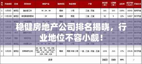 随着国内经济的持续增长,房地产行业日益繁荣,众多房地产公司纷纷崭露头角,稳健房地产公司在业内以其稳健的经营策略、良好的市场口碑和持续的发展潜力赢得了广大投资者和消费者的关注,稳健房地产公司在行业内的排名究竟是多少呢?本文将从多个角度对稳健房地产公司的排名及其行业地位进行深入剖析。
