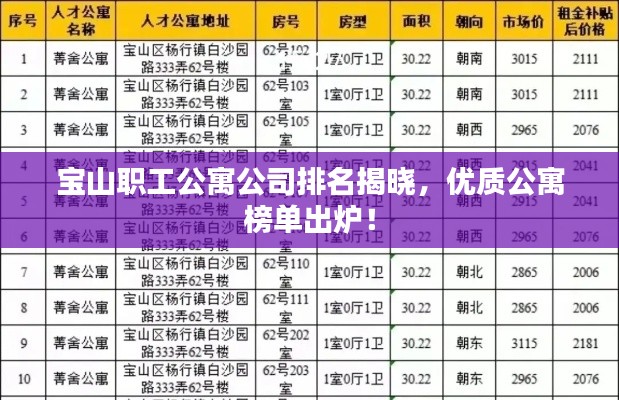 转载请注明来自溜溜的小站,本文标题:《宝山职工公寓公司排名揭晓,优质公寓榜单出炉!》