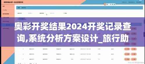 转载请注明来自溜溜的小站,本文标题:《奥彩开奖结果2024开奖记录查询,系统分析方案设计_旅行助手版DMZ13.39》